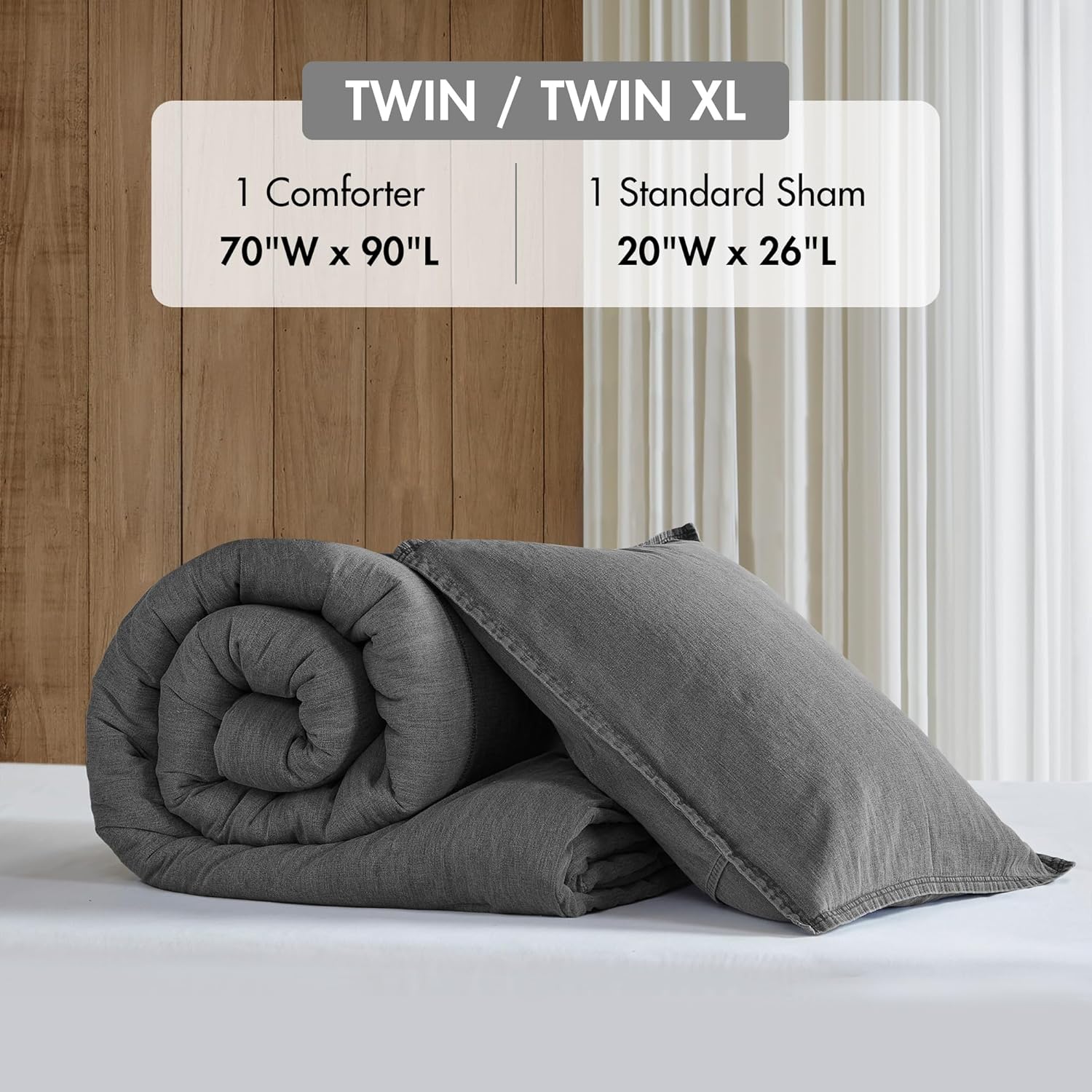 Embrace the breathable softness of this cotton comforter set, crafted from 100% natural cotton and stone-washed for a lived-in feel. The premium stone-washed finish enhances softness and adds timeless charm to your bedroom décor. Offering all-season comfort, the plush poly-fill provides cloud-like warmth, perfect for snuggling year-round. OEKO-TEX STANDARD 100 Certified for safety, it ensures no harmful substances or chemicals. Designed for durability and is easy to care for—simply machine wash cold, wash separately, and tumble dry low for lasting freshness.