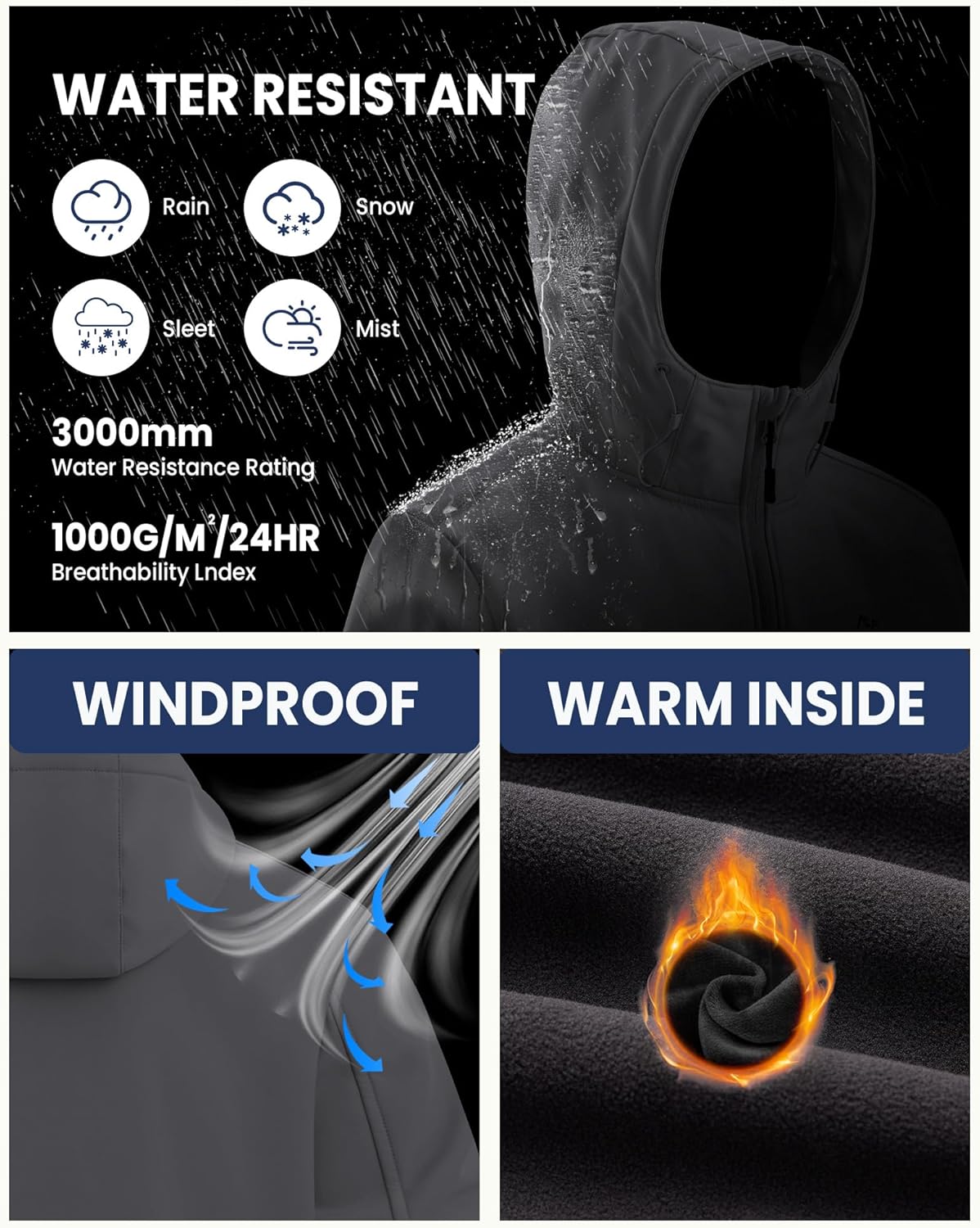 WULFUL Men’s Lightweight Softshell Jacket Warm Fleece Lined Windbreaker Waterproof Soft Shell for Outdoor Hiking