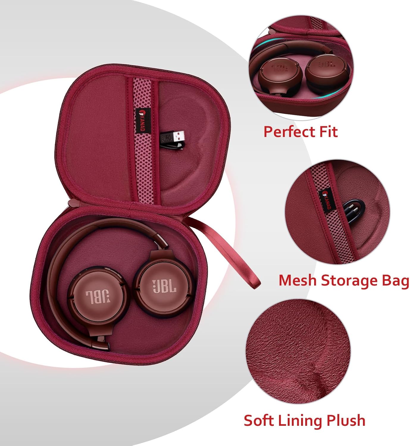 XANAD Hard Case for JBL Tune 510BT / 520BT / 660NC / 670NC / 570BT / 500BT / 500 / JBL Live 460NC / Soundcore H30i Bluetooth Headphone (Wine Red)