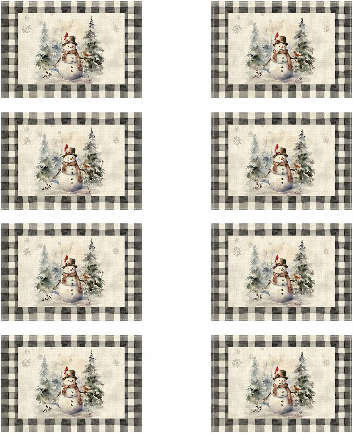 XCHI Watercolor Buffalo Plaid Snowman Snowflakes Christmas Winter Xmas Placemats Set of 8 Table Mats for Party Home Kitchen Dining Table Decorations 12×18 Inch
