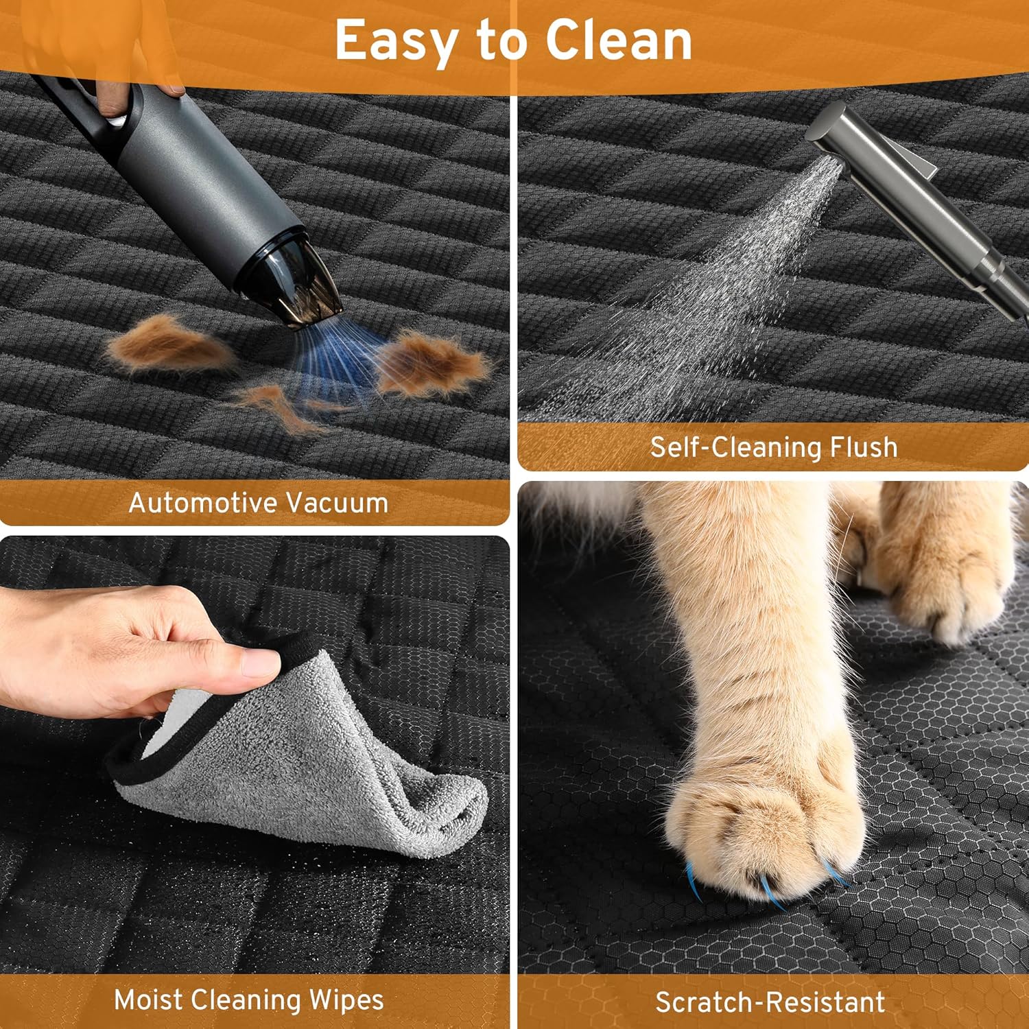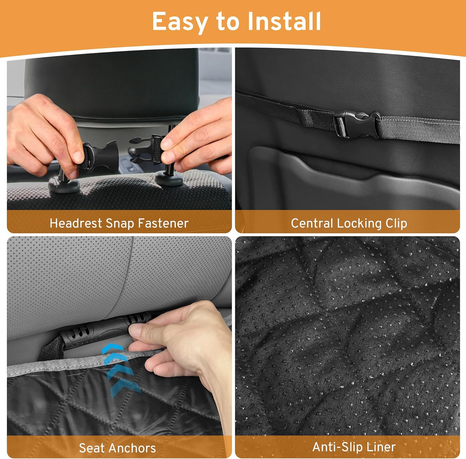 【Waterproof Dog Car Seat Cover】- This car seat cover was made of upgraded fabric with a water-resistant coating, it also used hot pressing technology instead of quilting, without needle holes to avoid leaking water. No more worried about dog seat cover ruins your seats.