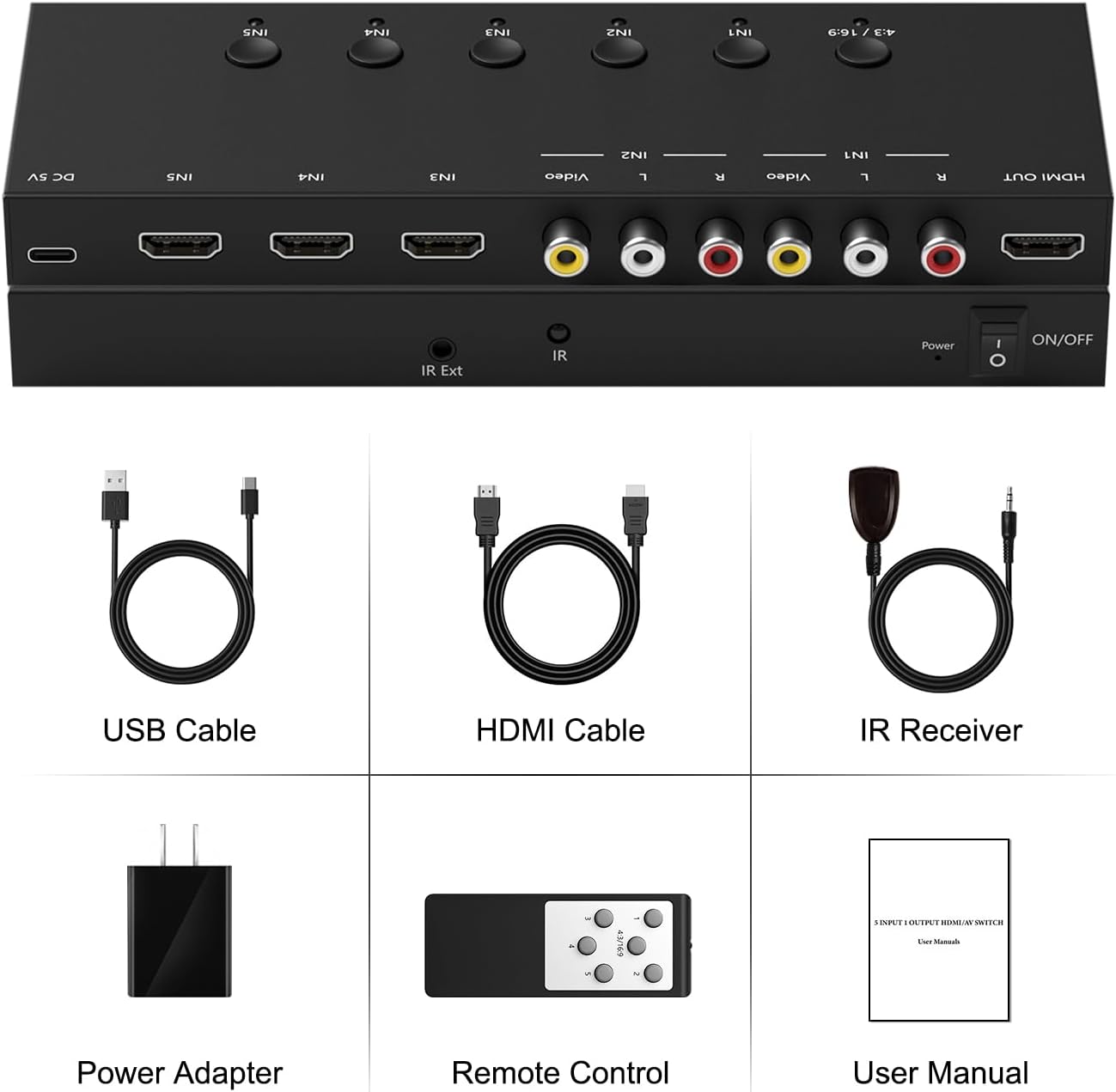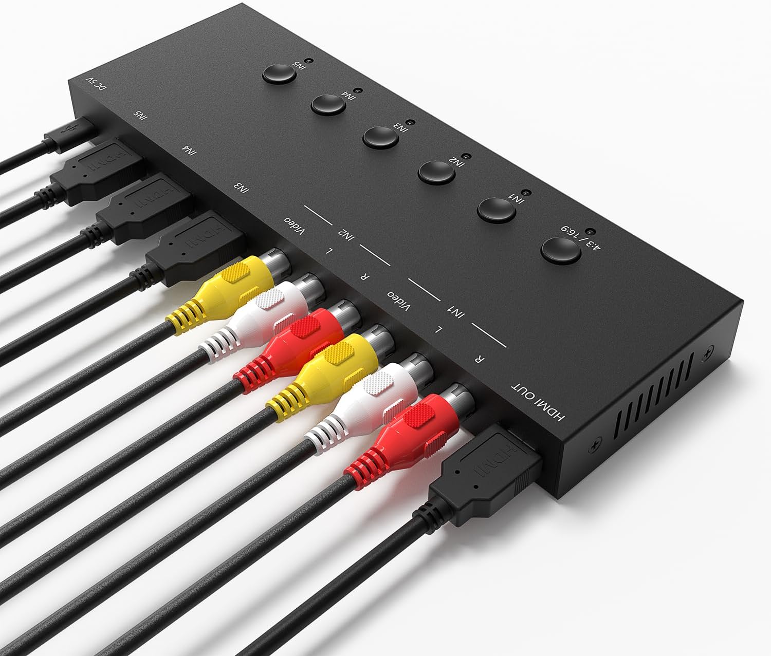 Y.D.F 3 Way HDMI 2.0 Switcher + 2 RCA to HDMI Converter(2 in 1) 2 Way AV Composite CVBS Switch to HDMI Adapter Support 4:3/16:9 Switching for N64 NGC Wii Xbox PS2/3/4/5 Xbox Series/ONE Switch