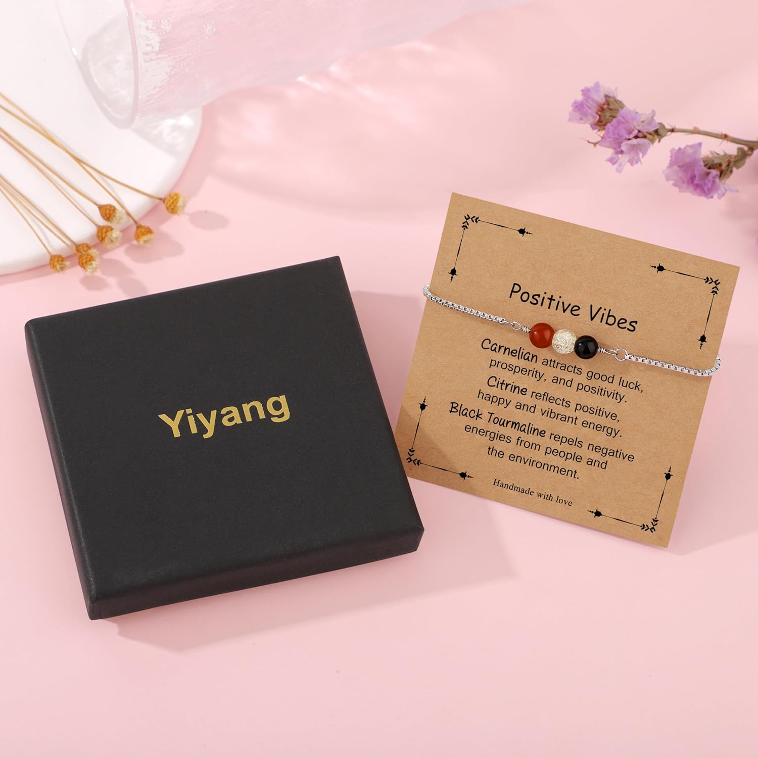 Yiyang Natural Crystal Bracelet Gifts for New Beginnings Anxiety Relief Positive Vibes Good Luck Protection Healing Bracelet Inspirational Encouragement Gifts for Women Friends