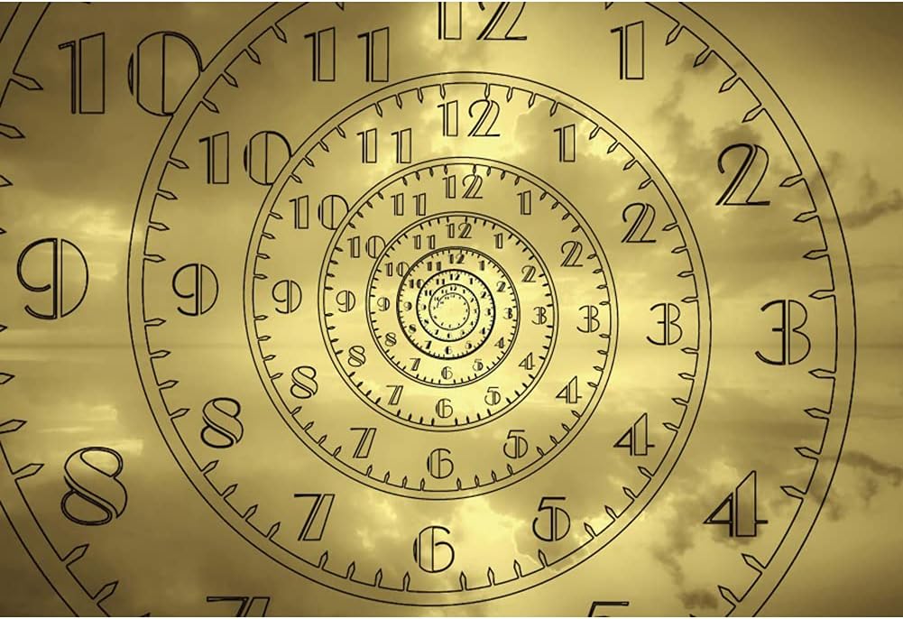 YongFoto 5x3ft Steampunk Theme Backdrop Twisted Clock Face Magic Repeat Surreal Spiral Clock Photography Background Nostalgia Style Novelty Artistic Design Party Decor Banner Photo Studio Props
