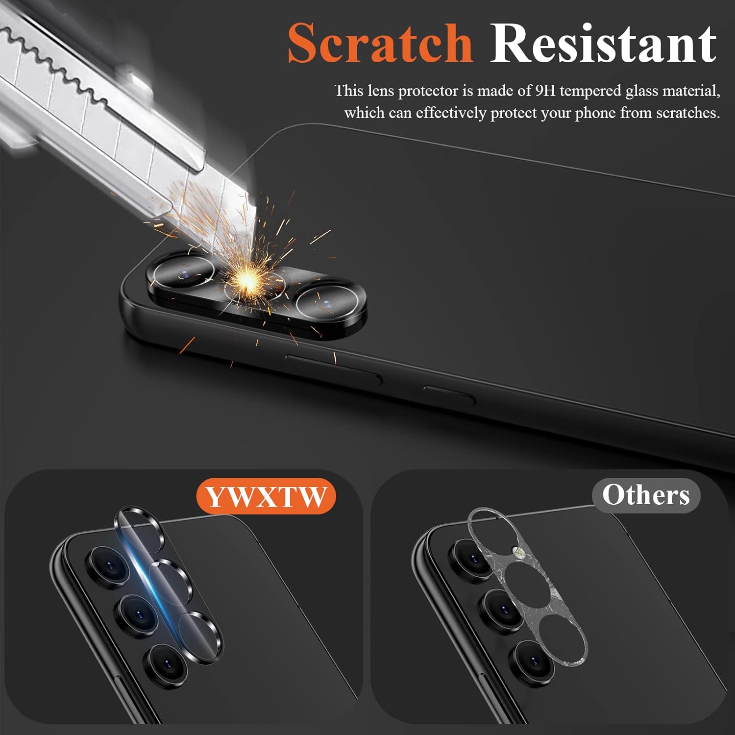 Compatibility: YWXTW designed for Samsung Galaxy S24 / S23 / S23 Plus camera lens protector is made by premium 9H tempered glass, scratch resistant. (Not for Galaxy S24 Plus). Not affect the flash when taking pictures.