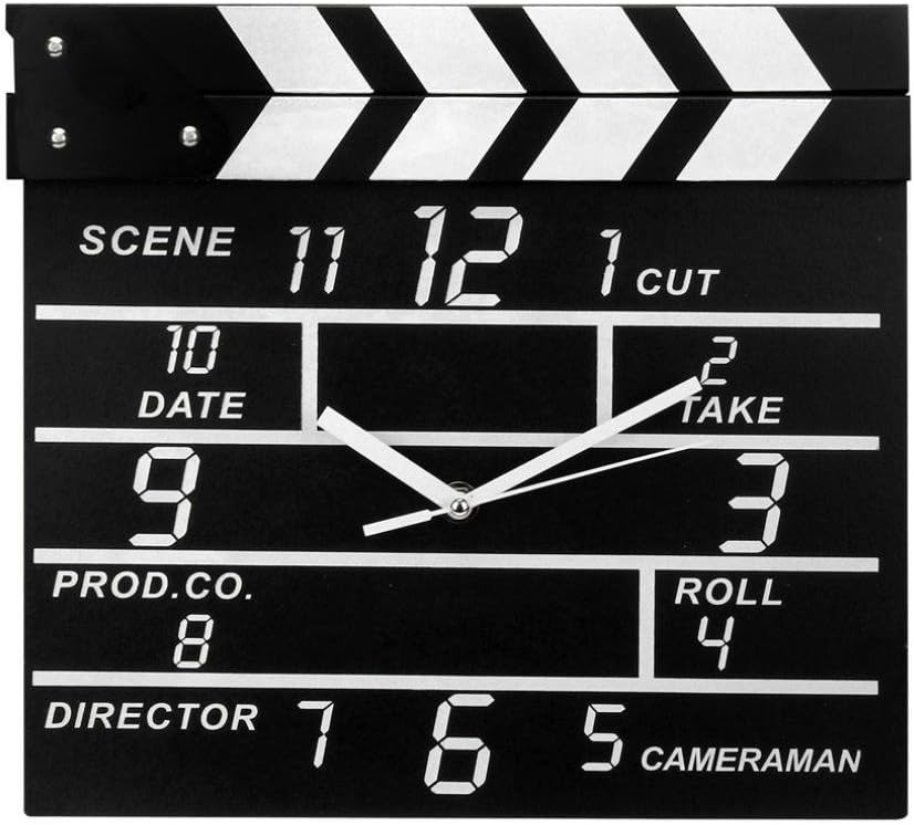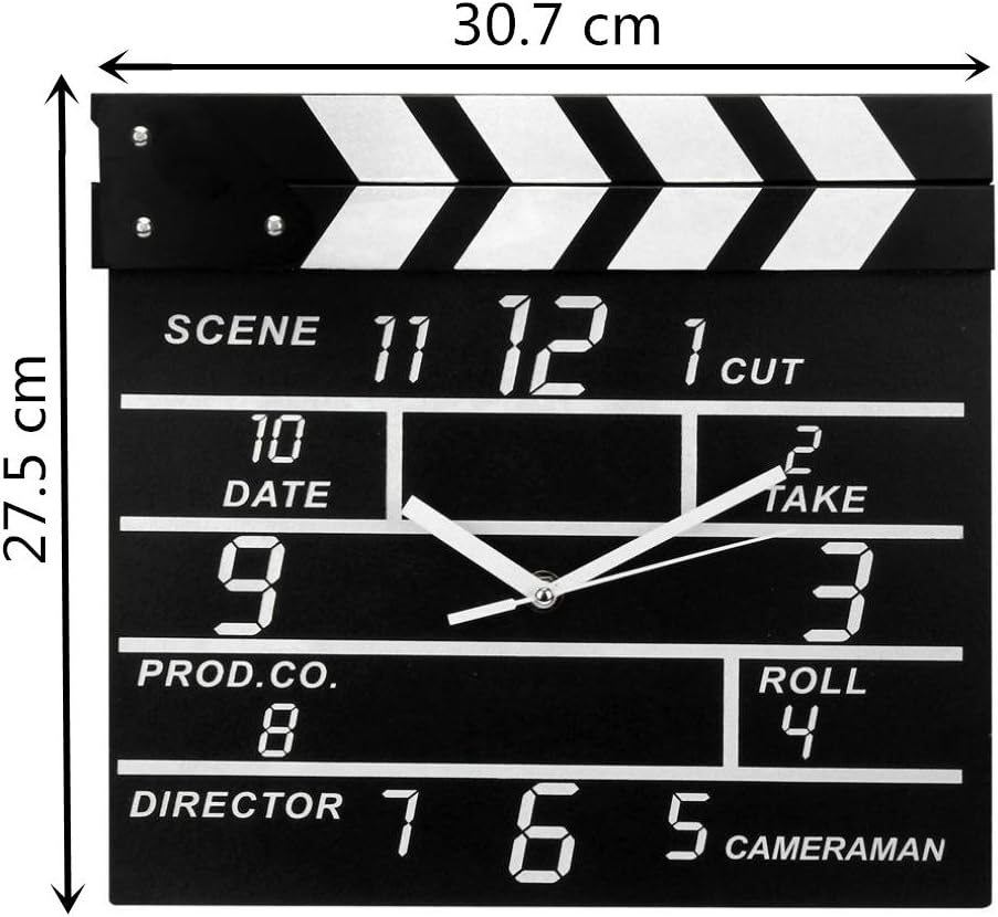 Zaoniy Large Retro Cinema Movie Slate Analog Wall Clock Clapper Film Modern Home, Theater Movie Reels Popcorn Wall Decor Home Decorations,Gift for Movie Lover, Friends and Family