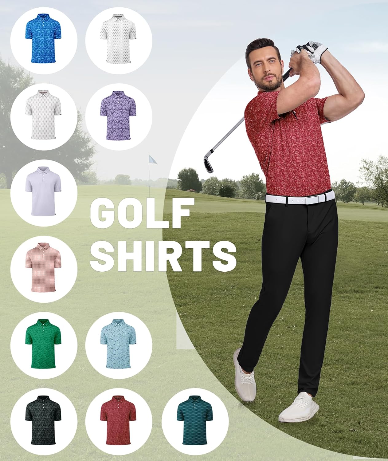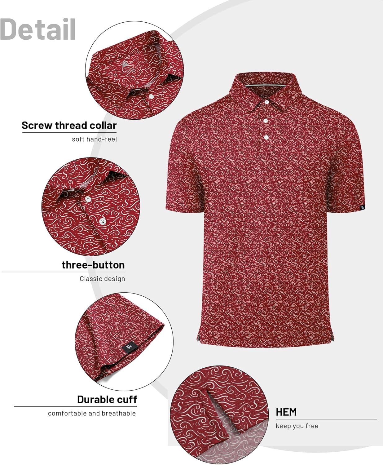 ZITY Mens Print Polo Shirts Short Sleeve Moisture Wicking Shirts for Men Golf Tennis Daily Casual Collared T-Shirt